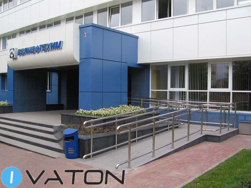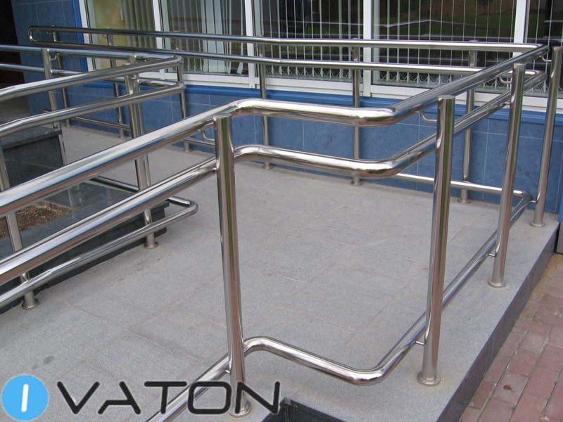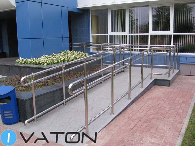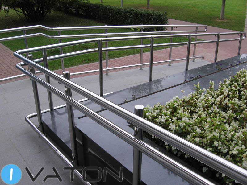 Наружное ограждение пандуса из нержавеющей стали с прямыми и гнутыми участками.